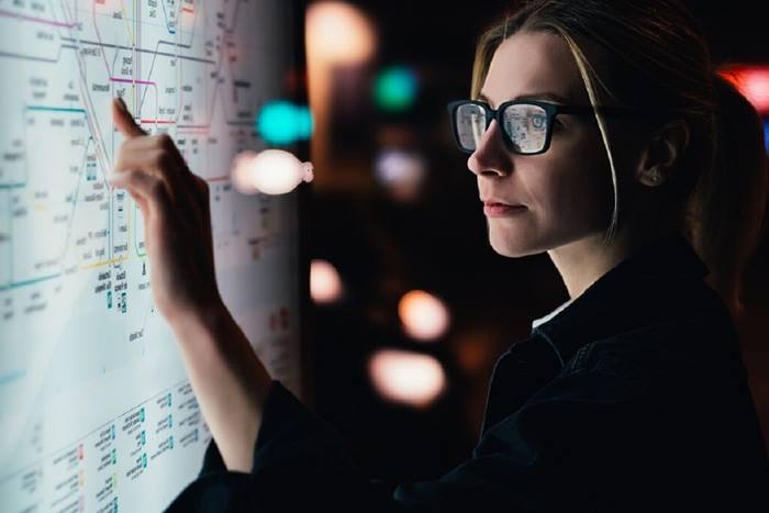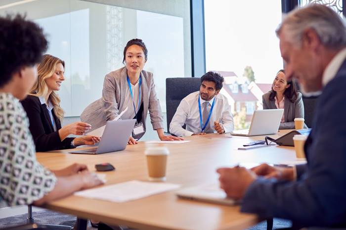 two professionals in desk area